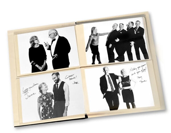 We give the guests their portrait a minute after we take them. It is 5 xt in size, in clean, graphic black & white. We make a second print for the “Guest Showcase.”